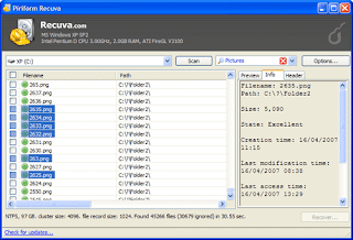 Recuva , An ultimate free date recovery software that able to restore and recovery deleted files / data from you hard disk or removable drive. This free data recovery software has a simple interface to allow user perform data recovery easily within few step. This data recovery software to scan your hard disk or removable to able to recover files that emptied from recycle bin or deleted on a hard drive, flash card, mp3 player, and more. It will even bring back files that have been deleted by bugs, crashes and viruses.